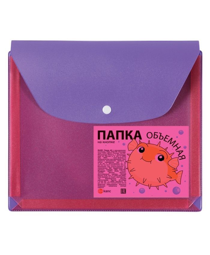 Папка прозрачная, А5 формата с расширением, на кнопке. Предназначена для хранения документов или общих тетрадей школьника.