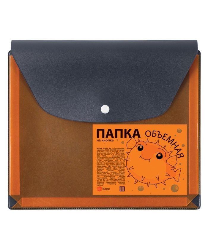 Конверт на кнопке 228*188мм, ПВХ, расширение до 2,5см (250 л),т.синий/пр.оранжевый