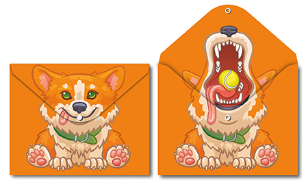 Папка-конверт Centrum "Корги" на кнопке. Двухсторонняя яркая полноцветная печать, авторский дизайн нашего художника, тактильно приятная текстура материла, надежное крепление на кнопку.