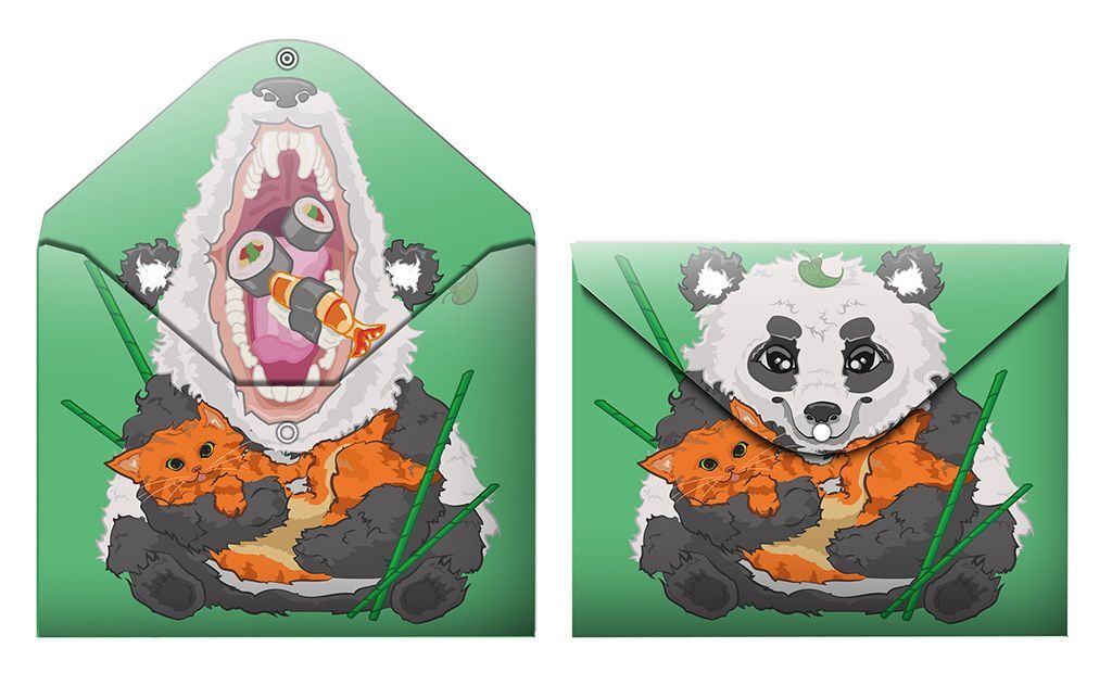 Конверт на кнопке с рисунком А4 Панда, двустор.печать