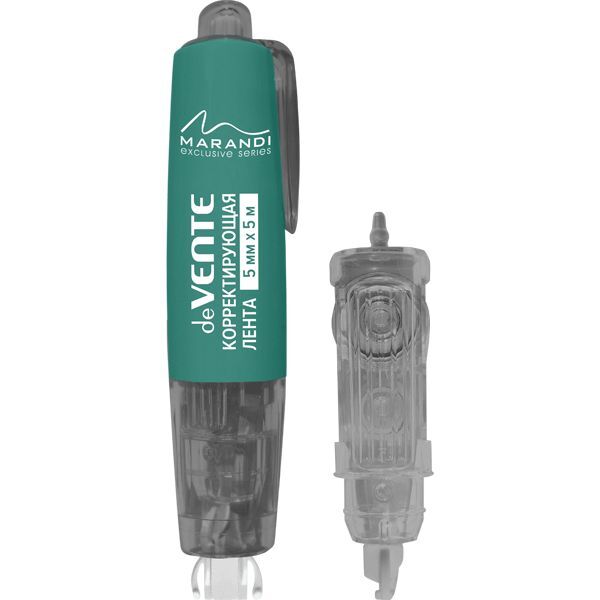 Корректирующая лента автоматическая "deVENTE. Marandi" 5 ммx5 м, полупрозрачный с бирюзовым корпус, фронтальный аппликатор, в комптекте с сменным картриджем 5 ммx5 м, в картонном блистере