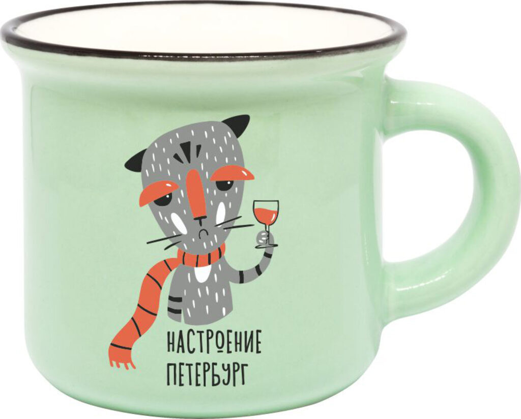 Кружка сувенирная 50мл, Кот. Настроение Петербург, зеленая