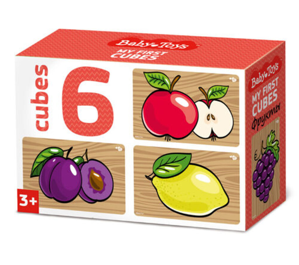 Кубики пластиковые 6шт "Фрукты" ТМ Baby Toys напечатанный рисунок 3+