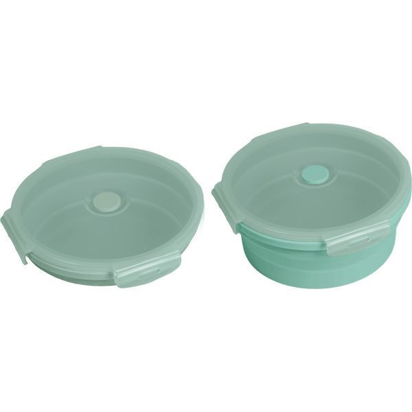 Ланчбокс складной герметичный "deVENTE" круглый, 550 мл, диаметр 14 см, высота 6,5 см, в сложенном виде высота 2,5 см, силиконовый, с пластиковой крышкой, с отверстием вентиляции и силиконовой заглушкой, мятный