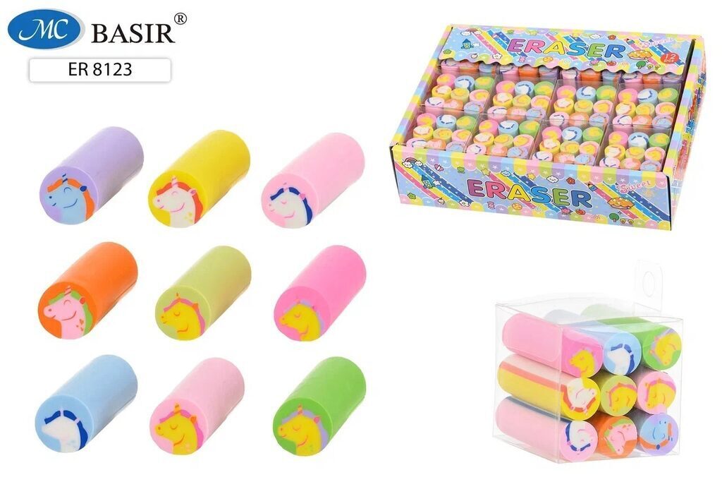 Ластик: "ЕДИНОРОГ"; мягкий, цветной, цилиндрической формы с рисунком /ассорти/, в пластиковой упаковке по 9 штук, размер 4,8*1,4 см. Оригинальные ластики станут отличным подарком и незаменимым инструментом в учебе для вашего ребенка. Необычный дизайн ластика подарит отличное настроение своему хозяину. Обеспечивает мягкое стирание надписей, сделанных чернографитными и цветными карандашами. Подходит для работы на всех видах бумаги. Не оставляет разводов и не нарушает структуру бумаги.