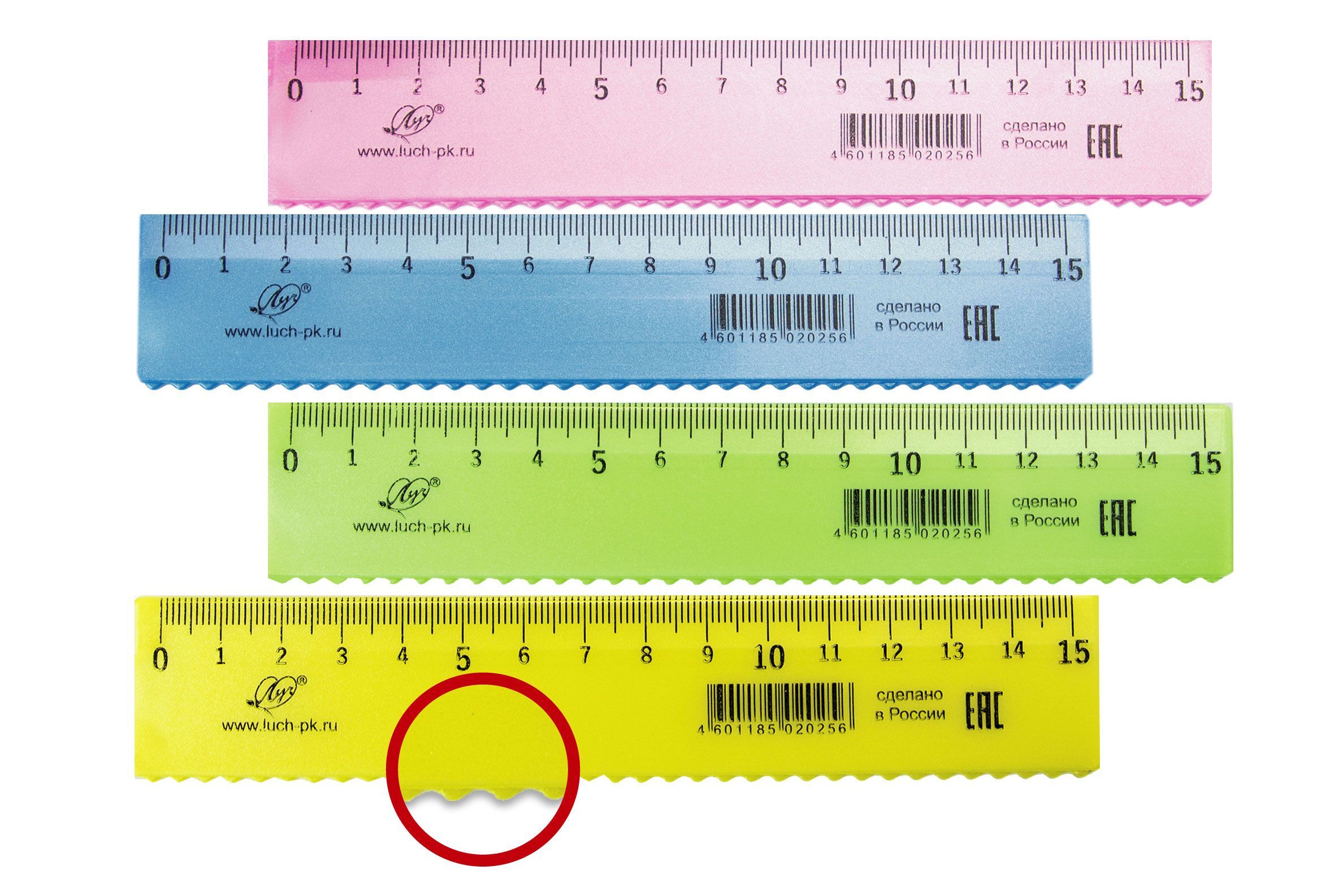 Линейка 15 см пластик. непрозр. с волнистым краем, ассорти