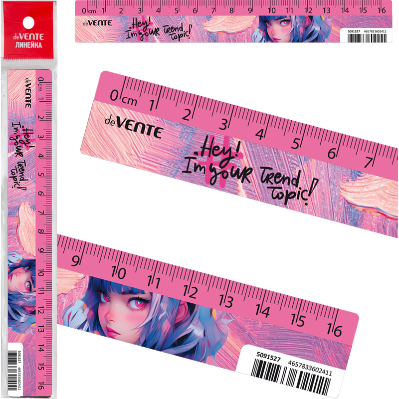 Линейка пластиковая "deVENTE. Hey Girl" 16 см, с дизайном, с индивидуальной маркировкой, с цветным стикером