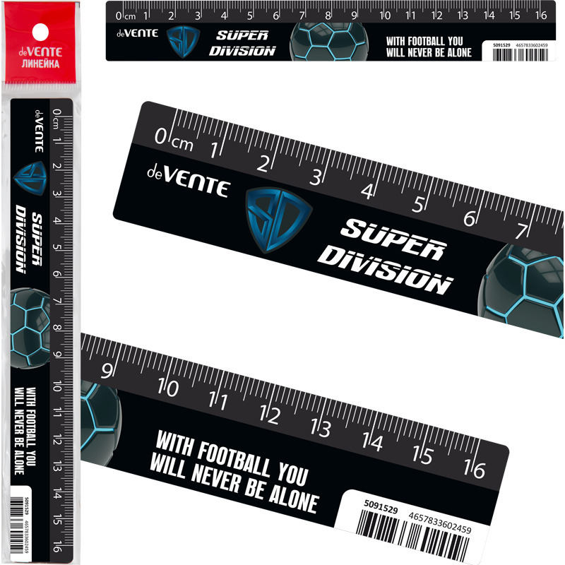 Линейка пластиковая "deVENTE. Super Division" 16 см, с дизайном, с индивидуальной маркировкой, с цветным стикером