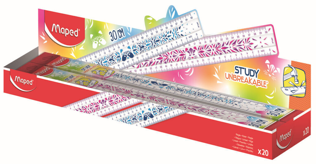 245601 STUDY UNBREAKABLE FANCY Суперпрочная плоская декорированная линейка, 30 см, ассорти, в пакете с подвесом