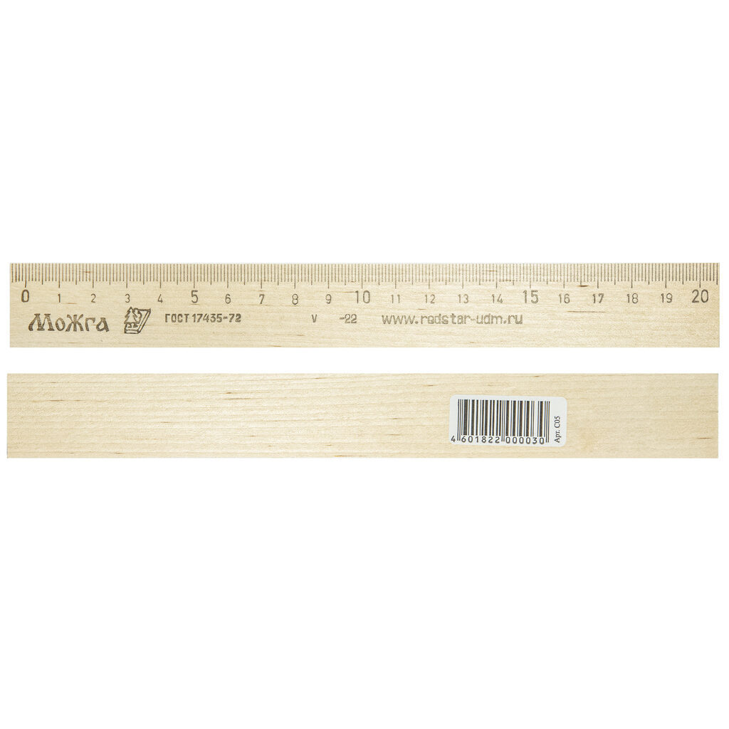 Линейка 20 см. Изготовлена из натуральной древесины твердолиственных пород (береза) Штрих-код на единице изделия.