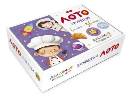 Лото детское "Профессии" 36 фишек, 6 полей, в коробке