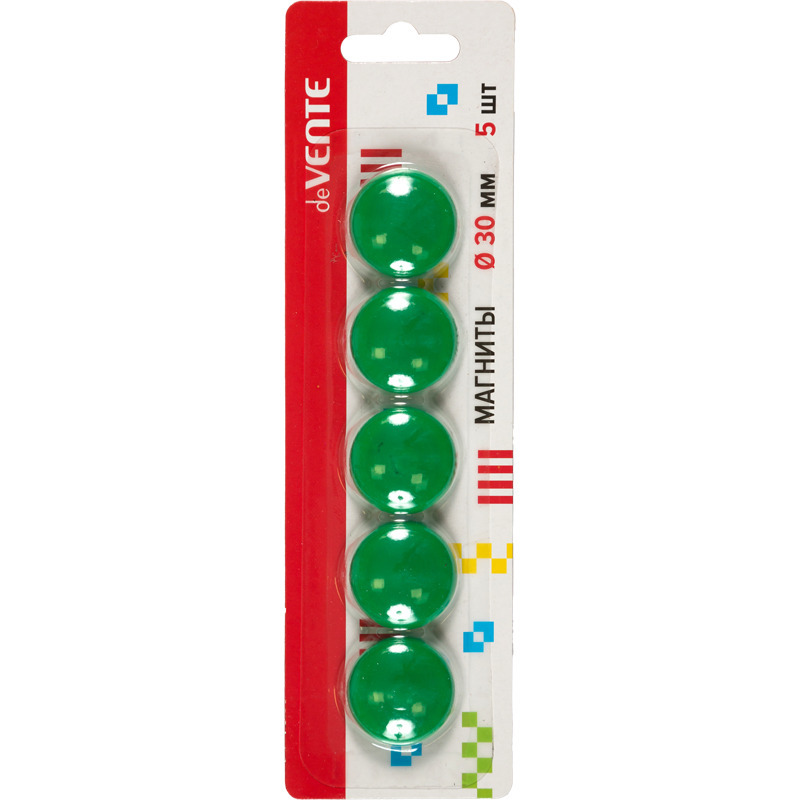 Магнит для доски офисной "deVENTE" Ø 30 мм, 5 шт, цвет зеленый, в картонном блистере