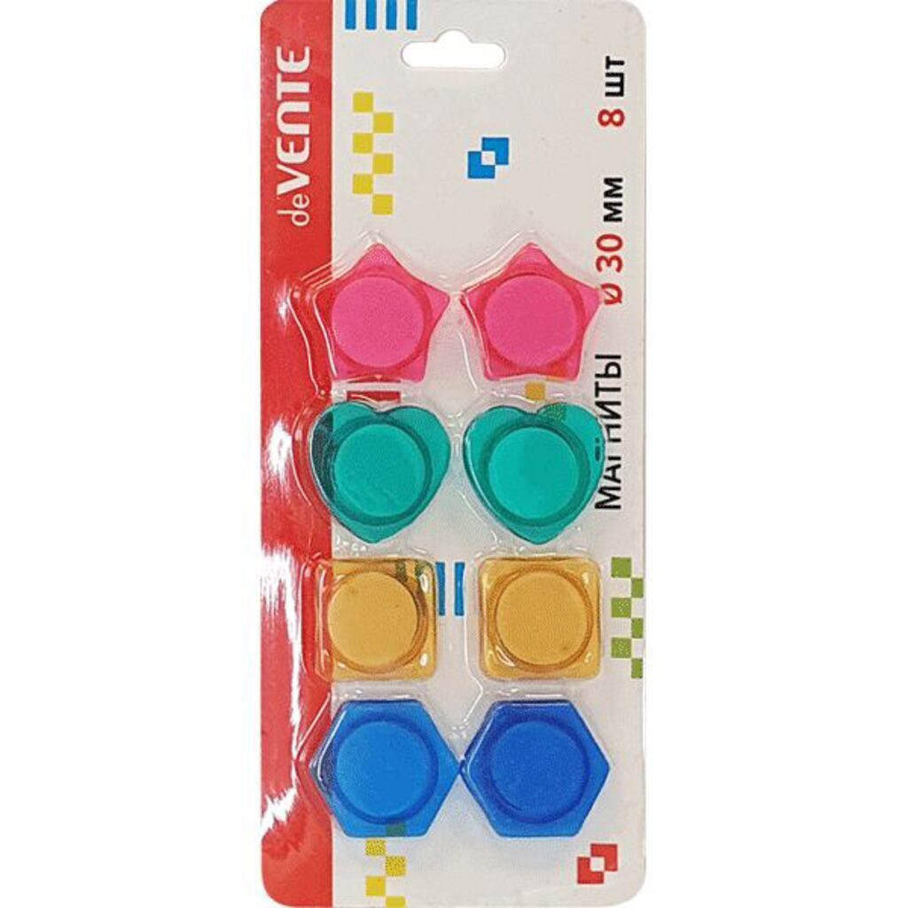 Магнит для доски офисной "deVENTE. Фигуры" ? 30 мм, 8 шт, полупрозрачные тонированные, в картонном блистере