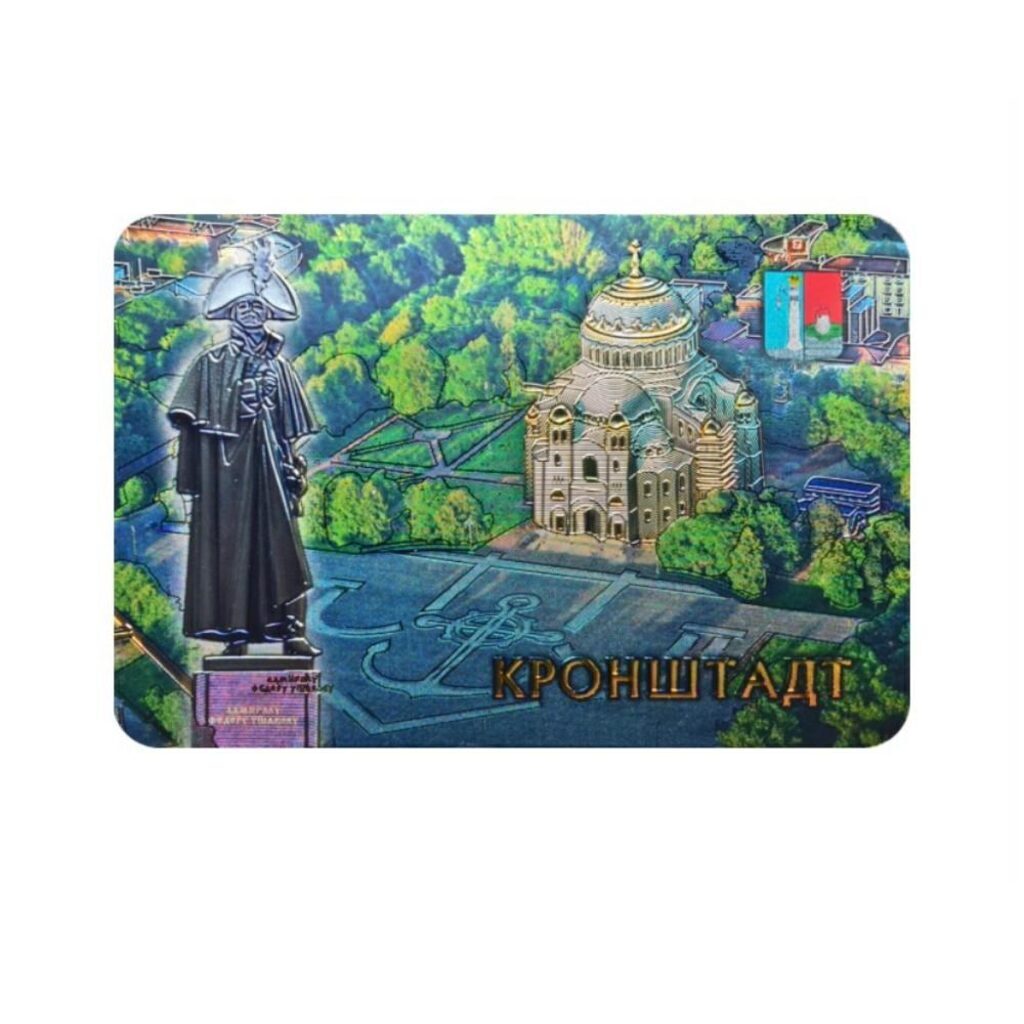 Магнит сувенирный Кронштадт. Памятник Ушакову-Морской собор с высоты птичьего полета