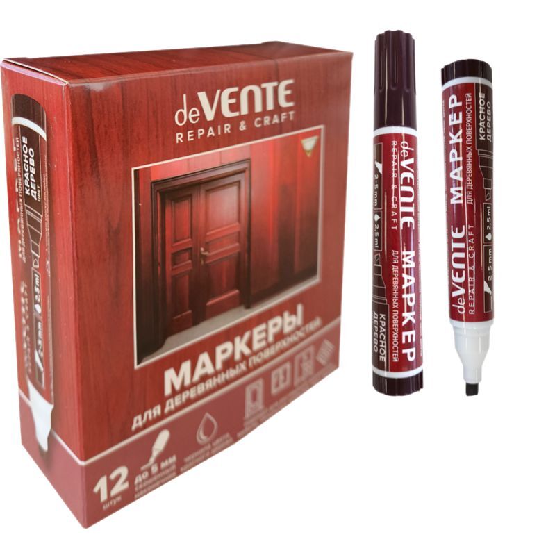 Маркер для деревянных поверхностей "deVENTE. Repair" круглый корпус, скошенный наконечник, ширина линии письма 1-5 мм, цвет - красное дерево
