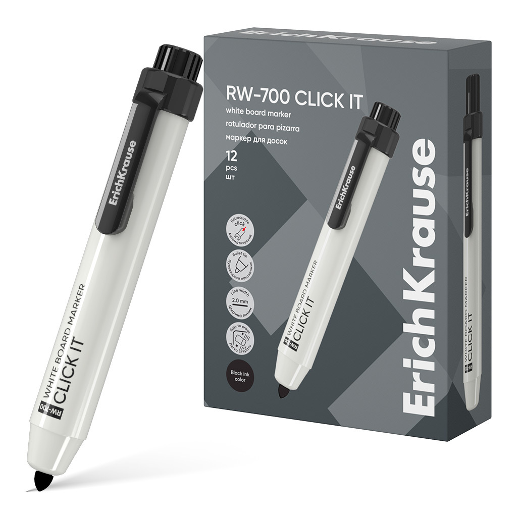 Автоматический маркер для письма и сухого стирания на досках. Очень практичный, незаменим во время проведения презентаций, совещаний и пр. Имеет круглую форму корпуса. Наконечник пулевидной формы устойчив к повреждению и истиранию. Ширина письма – 2.0 мм. Чернила на спиртовой основе, быстро высыхают после нанесения. Надписи легко стираются сухой тканью, не оставляя следов. Нетоксичные. Не содержат ксилол, толуол. Хранить горизонтально. Срок годности 5 лет.