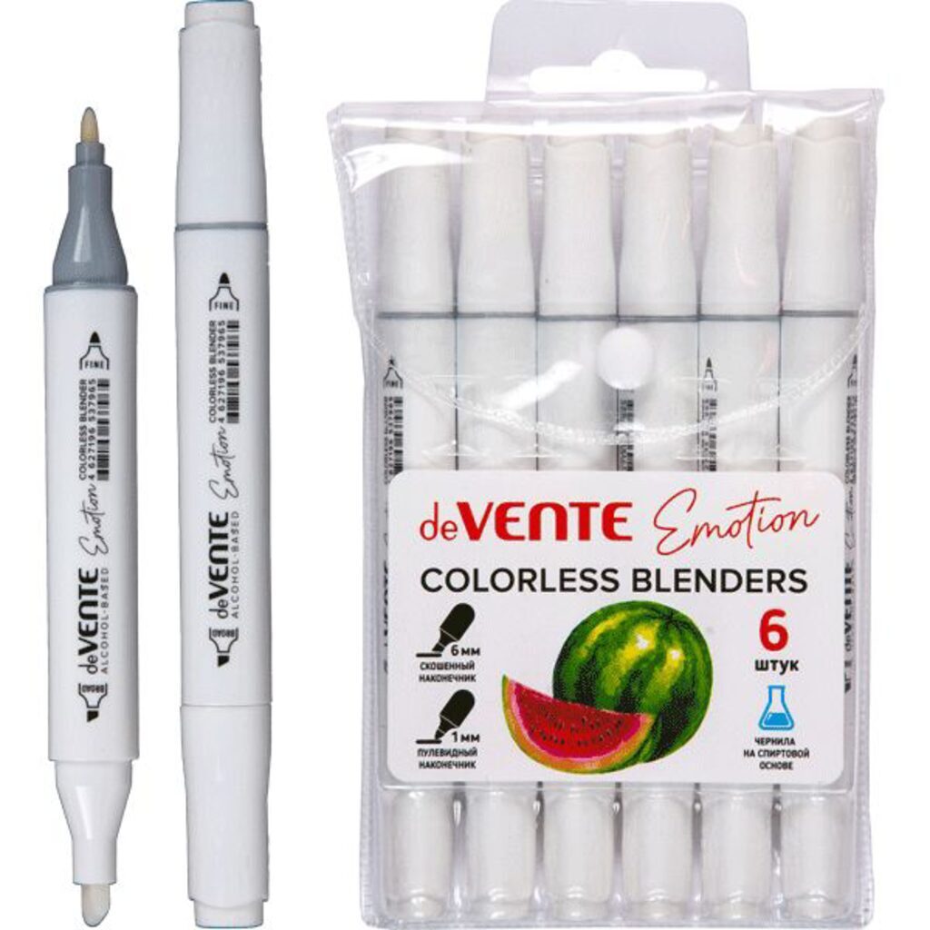 Маркер-блендер для скетчинга "deVENTE. Emotion" бесцветный двусторонний (пулевидный 1 мм/скошенный до 6 мм) эргономичный трёхгранный корпус, чернила на спиртовой основе,