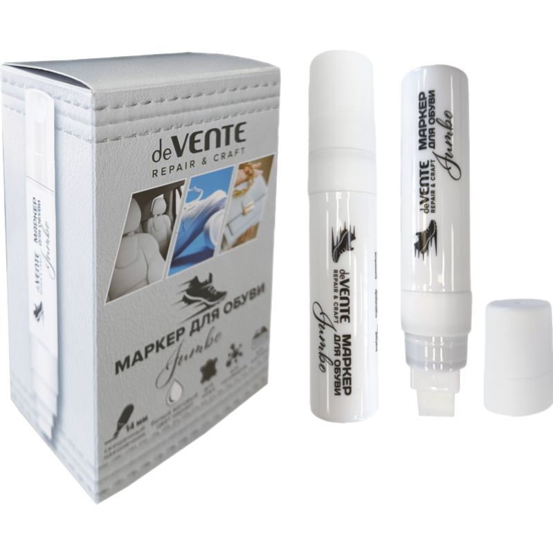 Маркер для обуви "deVENTE. Master Jumbo" круглый корпус увеличенного диаметра, скошенный наконечник, ширина линии письма до 14 мм, цвет - белый матовый, увеличенный запас чернил
