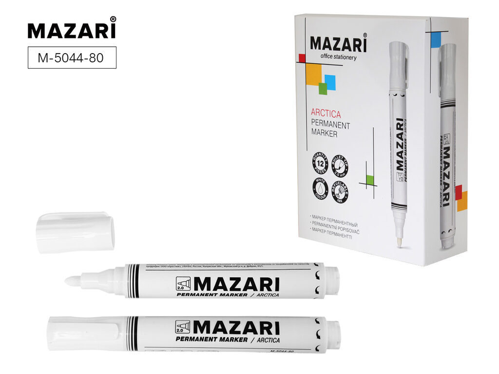 Маркер перманентный ARCTICA, БЕЛЫЙ, перезаправляемый c пулевидным наконечником, ширина линии письма 2мм,в картонной упаковке