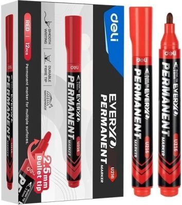 Перманентный маркер предназначен для временной маркировки большинства поверхностей: резина, дерево, металл, пластик, ПВХ, плитка, стекло, керамика, картон, кожа. Пулевидный пишущий узел диаметром 2,5 мм, яркий и насыщенный цвет чернил. Цвет чернил красный. Корпус маркера изготовлен из прочного пластика круглой формы. Чернила обладают свойствами высокой урывистости, светостойкости, устойчивы к климатическим изменения (дождь, туман, солнце), оставляют четкую и однородную линию, безопасны при использовании по назначению и не содержат ксилол и толуол.