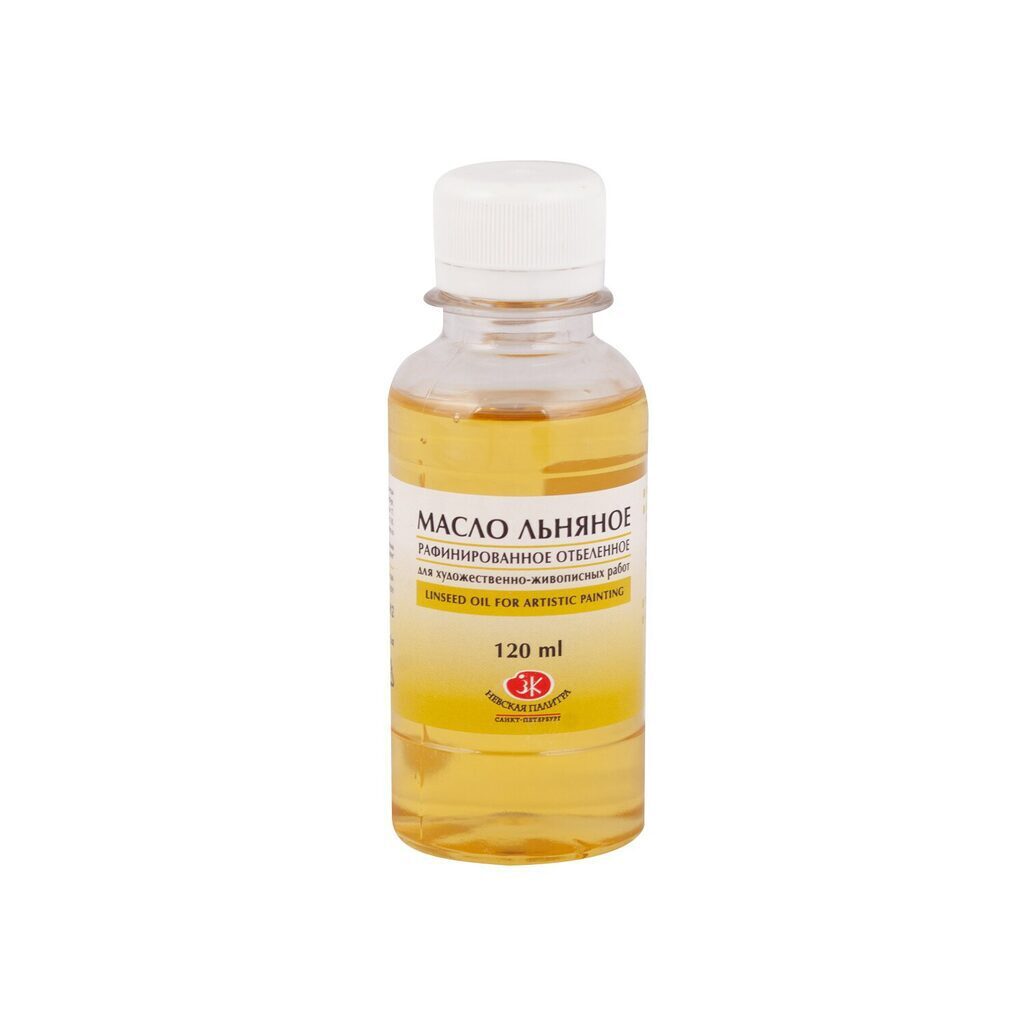 «Невская палитра» масло льняное отбеленное. Масло применяется в масляной живописи в качестве разбавителя красок. Подготовка и обработка масла проводится очень тщательно: его сушат, отбеливают, фильтруют. Преимущества: отличная разносимость разбавленной льняным маслом краски, прозрачность, замедление высыхания красочной плёнки. Производитель: ЗАО «Завод Художественных красок «Невская Палитра», г. Санкт-Петербург