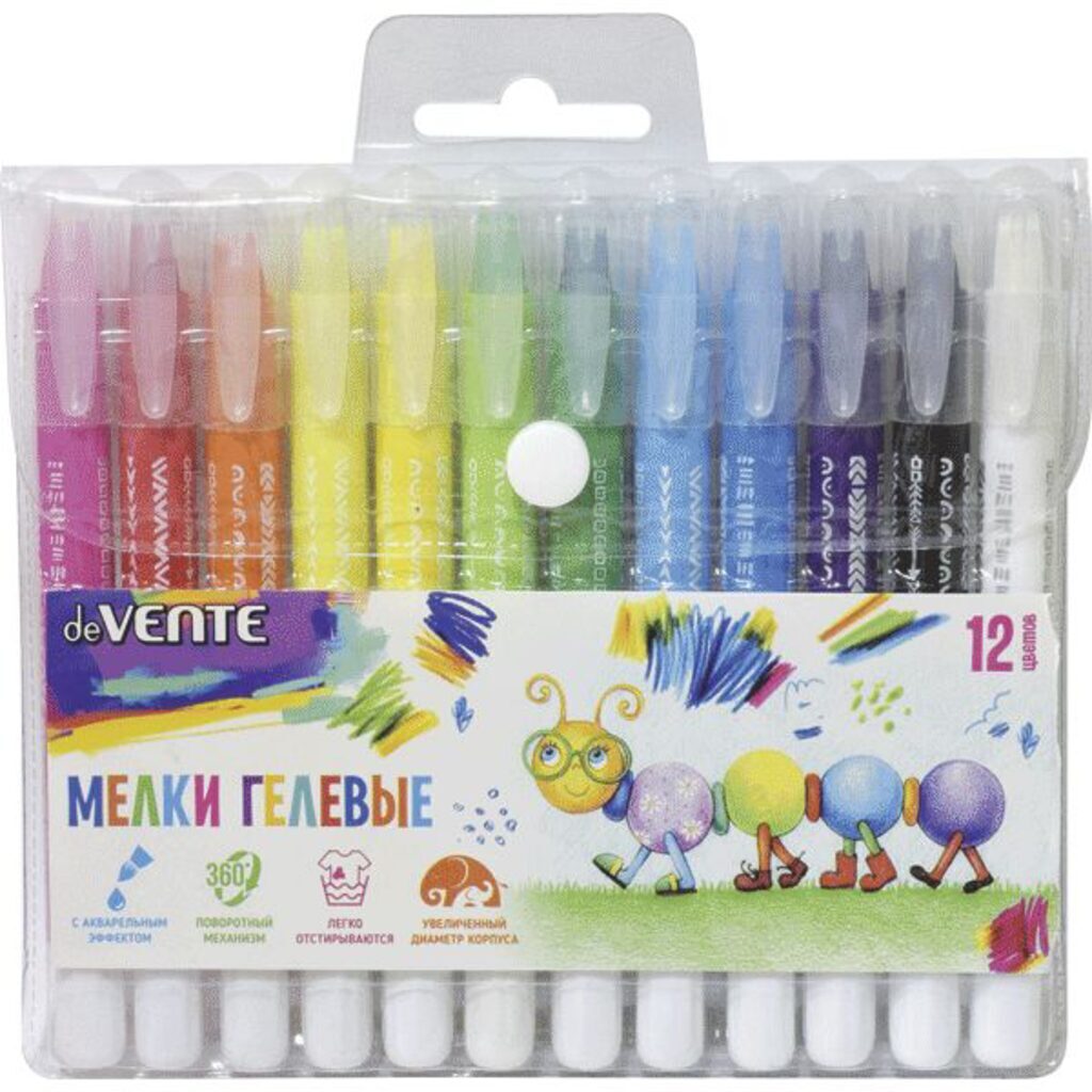 Мелки гелевые "deVENTE" 12 цветов, ультрамягкие, с акварельным эффектом, в пластиковом круглом корпусе с поворотным механизмом, в пластиковом блистере
