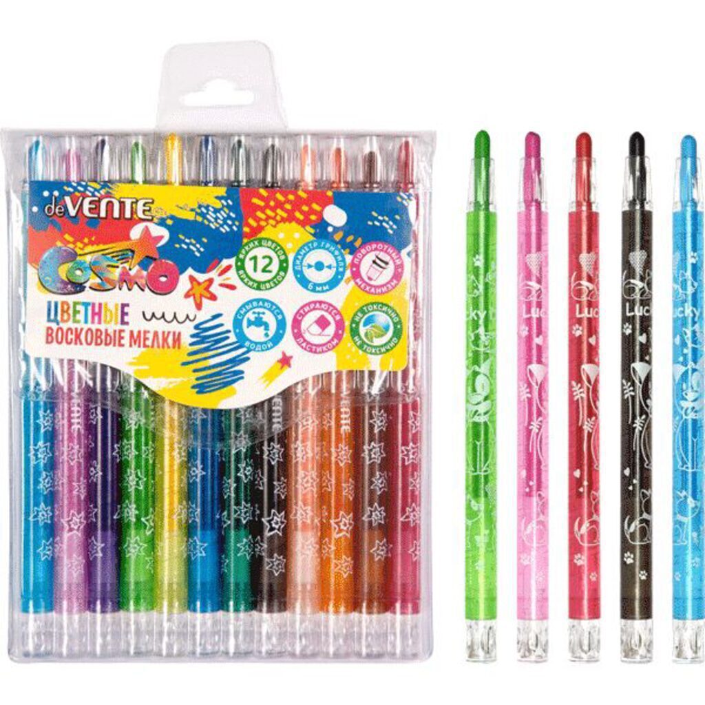 Мелки школьные "deVENTE. Cosmo" восковые с поворотным механизмом 12 цв в пластиковом блистере на липучке