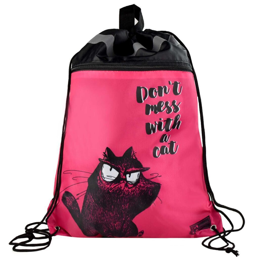 Мешок для сменной обуви. КРЭЙЗИ КОТ. Размер: 36х48 см. Материал: полиэстер. Количество отделений - 1. Количество наружных карманов - 1. Застёжка - шнурок. Отделка: сублимационная печать. Особенности: светоотражающая лента, ручка-петля, карман на молнии. Подклада: нет. Пол: для девочек. Индивидуальная упаковка: ПЭТ-пакет.