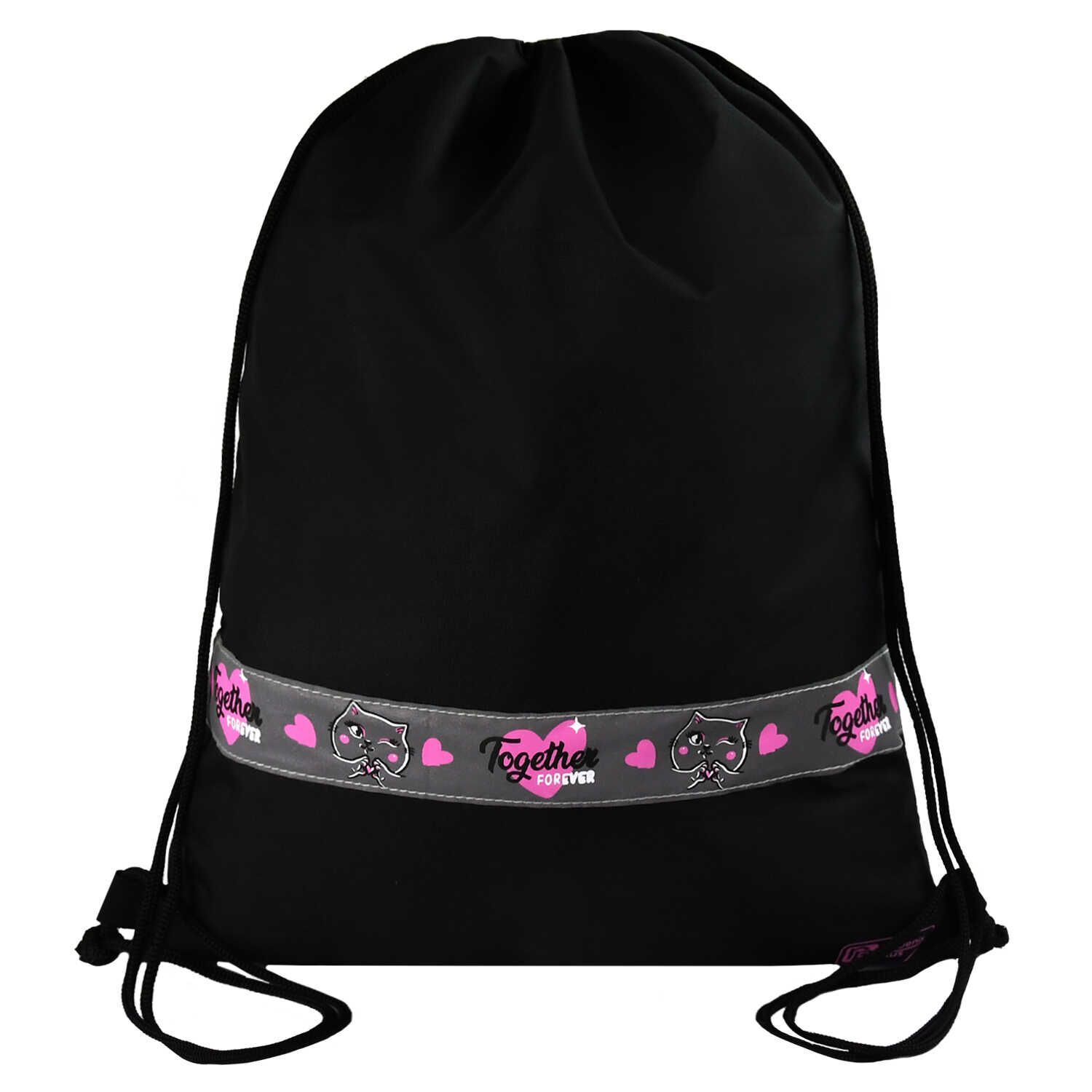 Мешок для обуви 1 отд, 360*480 светоотр. "Озорная кошечка"