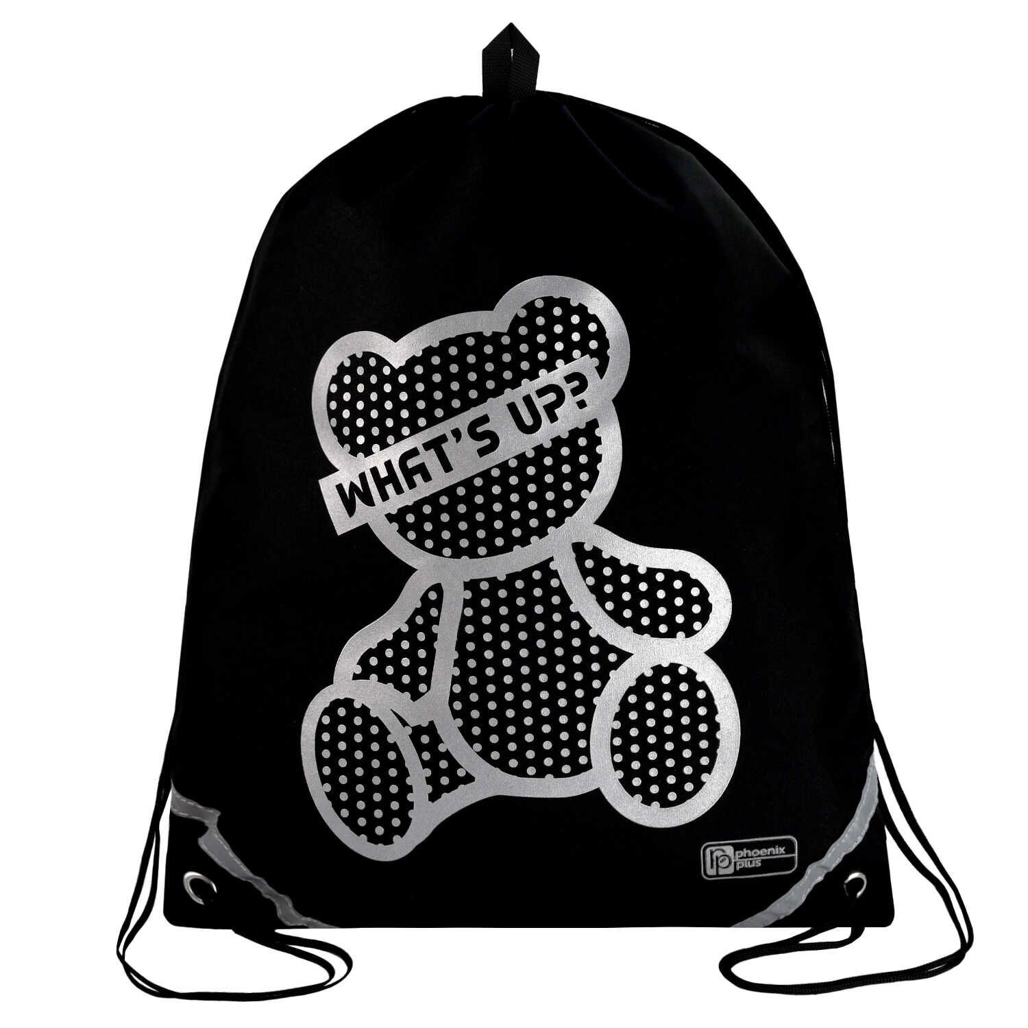 Мешок для обуви 1 отд, 360*480 светоотр. "Серебряный мишка" петля