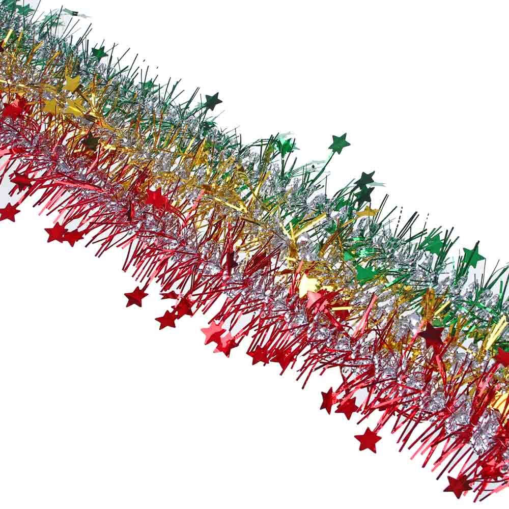 Мишура d=6см, 2м, ПВХ, двухцветная с декором Зевезды, ассорти