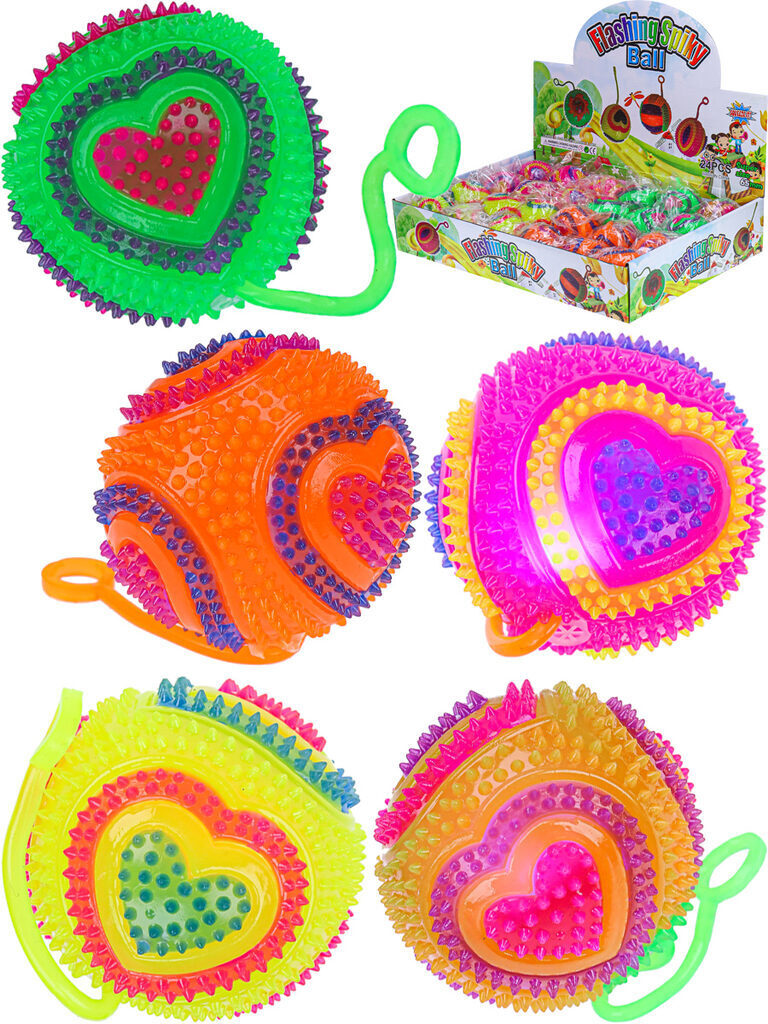 Мяч со светом с веревкой 6,5см "Сердечко"