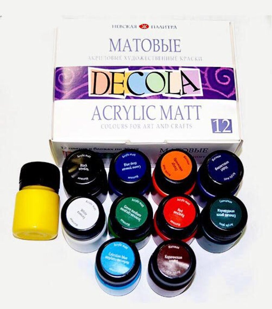 Набор акрил. красок 12цв 240мл "Decola" матовые, стекл. банка