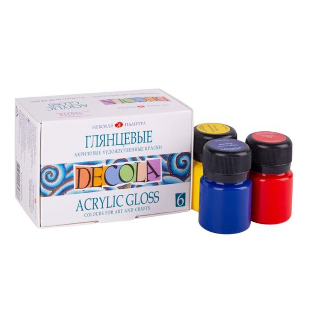 Набор акрил. красок 6 цв 20мл "Decola" глянец, банка
