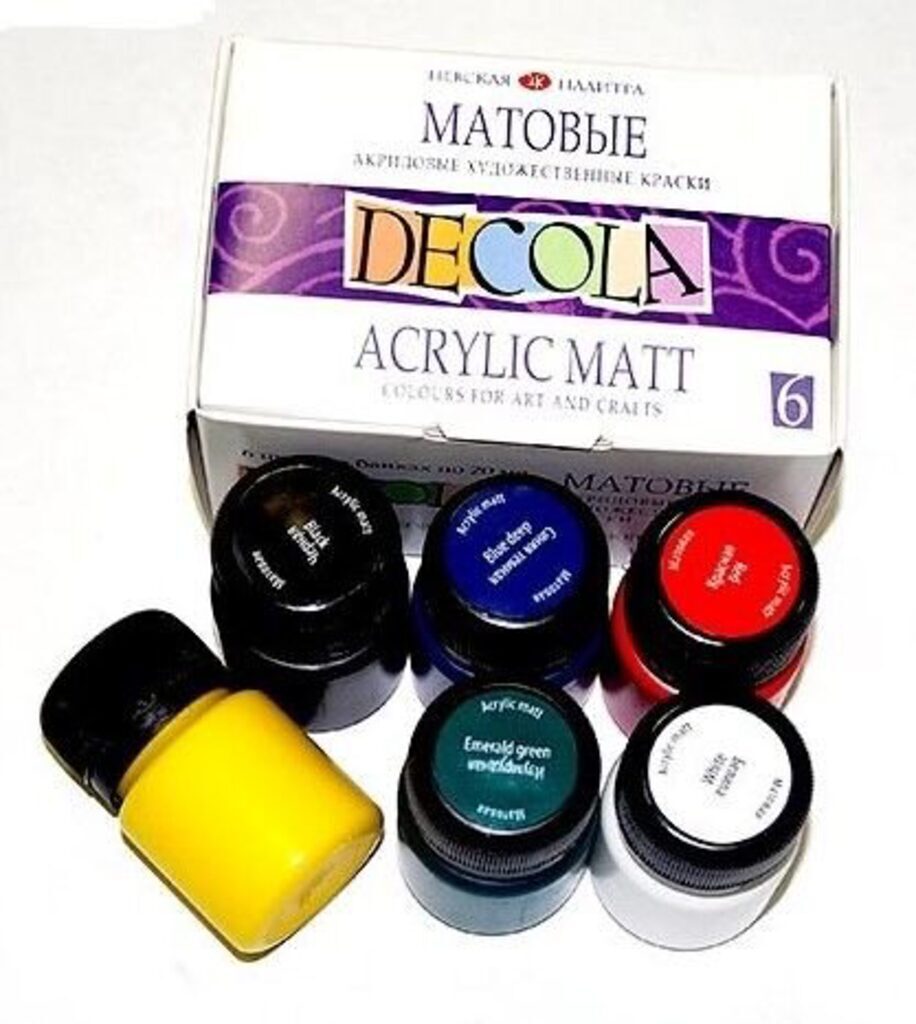 Набор акрил. красок 6 цв 20мл "Decola" матовые, стекл. банка