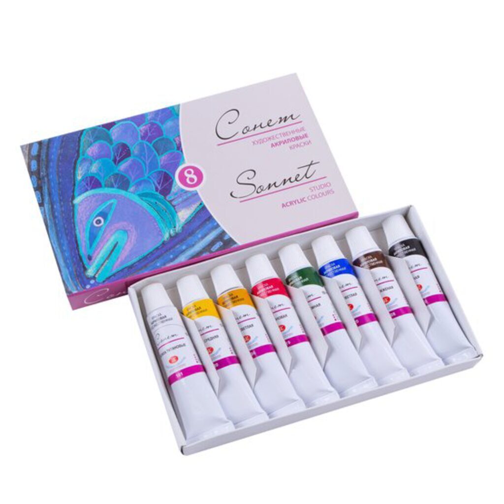 Набор акрил. красок 8 цв 10мл "Сонет" картон, туба