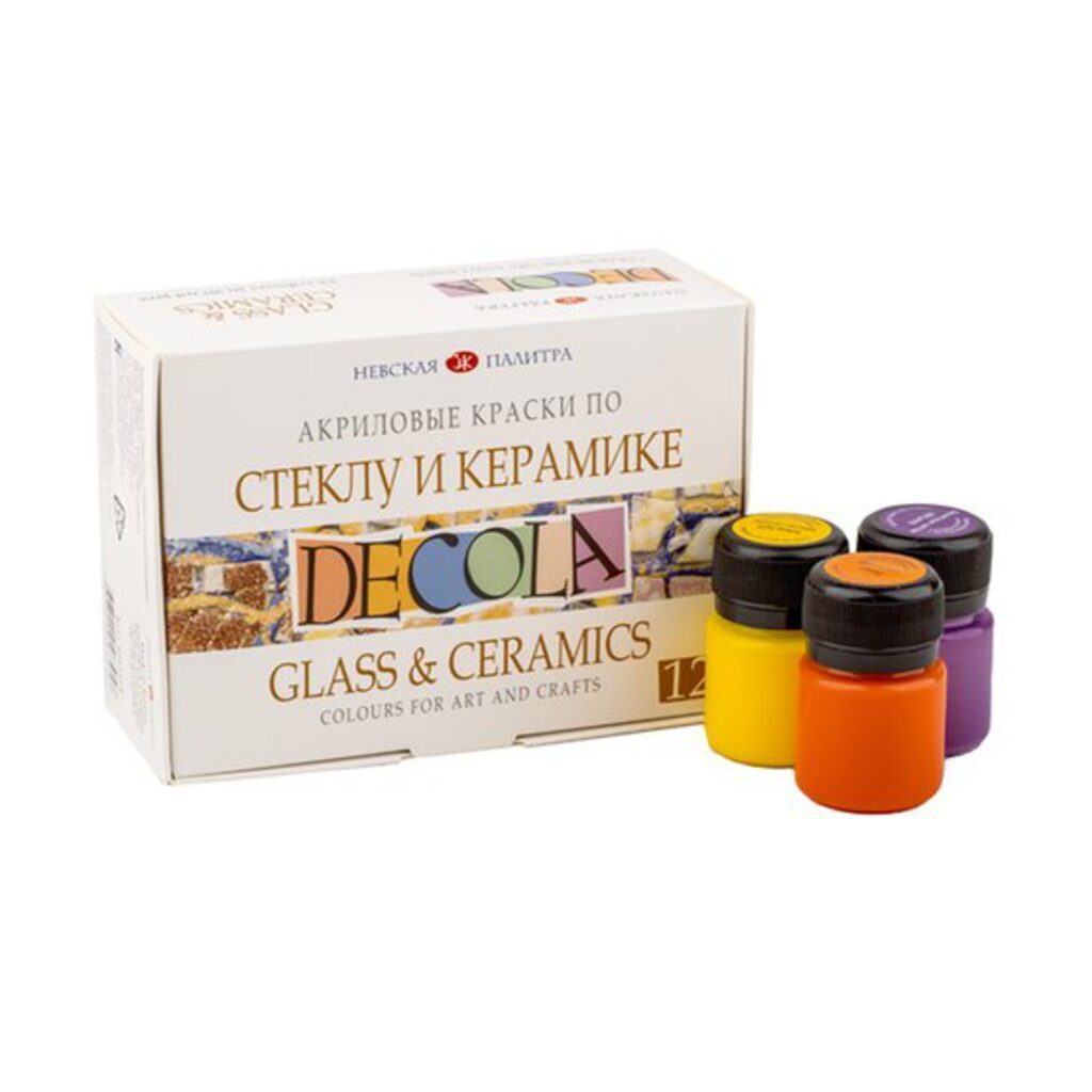 Набор акрил. красок по стеклу и керамике 12цв 20мл "Decola" банка