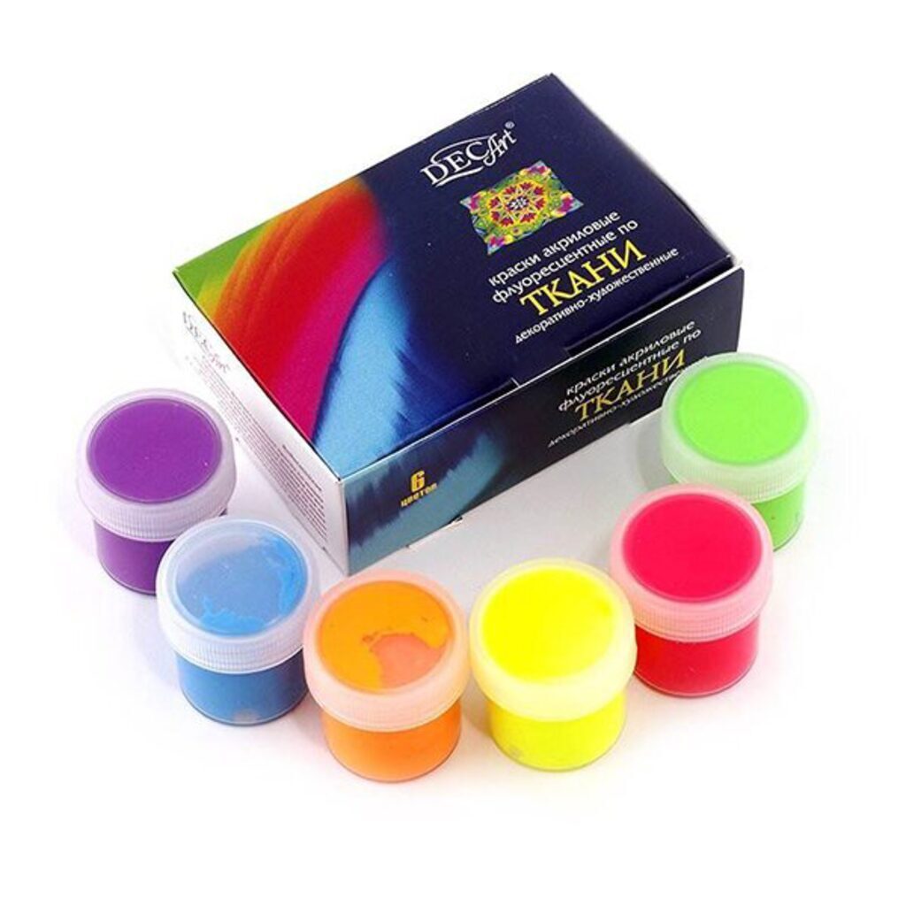 Набор акрил. красок по ткани 6 цв, 120мл "DecArt" флуорисцентный