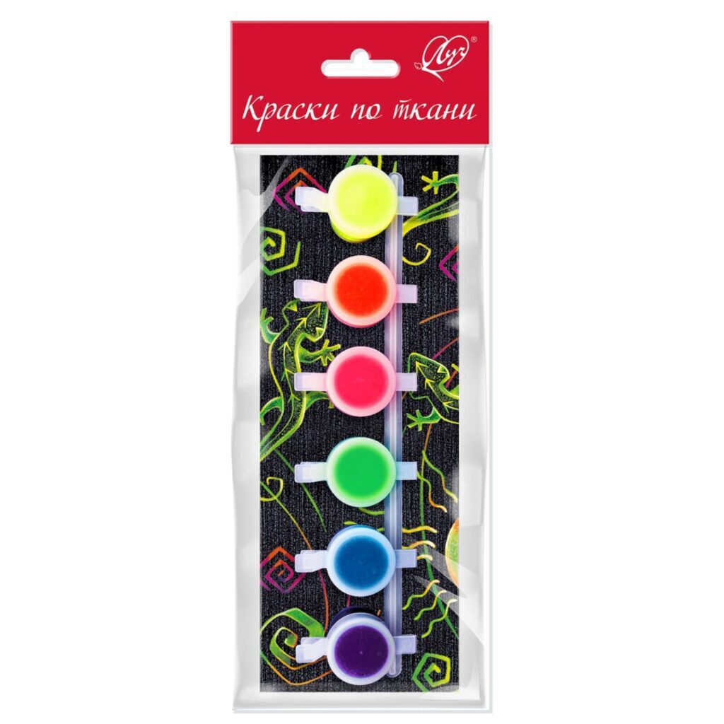 Набор акрил. красок по ткани 6 цв, 5мл., блок-тара, флюоресцентные