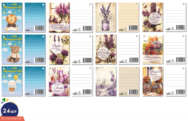 Набор бирок 8*5см "Важное напоминание" 24шт (12 видов по 2шт)