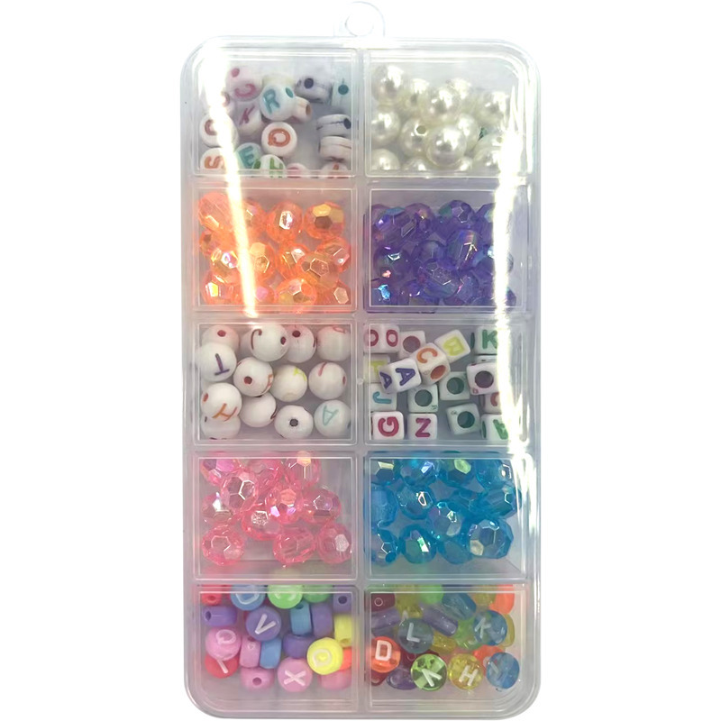 Набор бусин для творчества "deVENTE" пластиковые, 110 г: 6 мм бусины, ассорти цветов и форм, бусины-буквы ассорти цветов и форм, 10 дизайнов, в пластиковом подвесном контейнере с отделениями