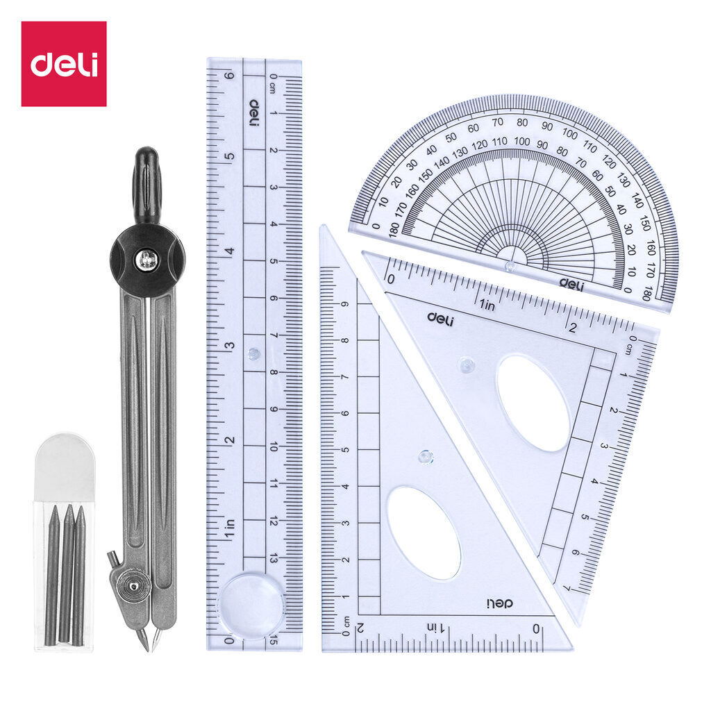 Набор чертежный Deli 5 предметов, в пласт. пенале