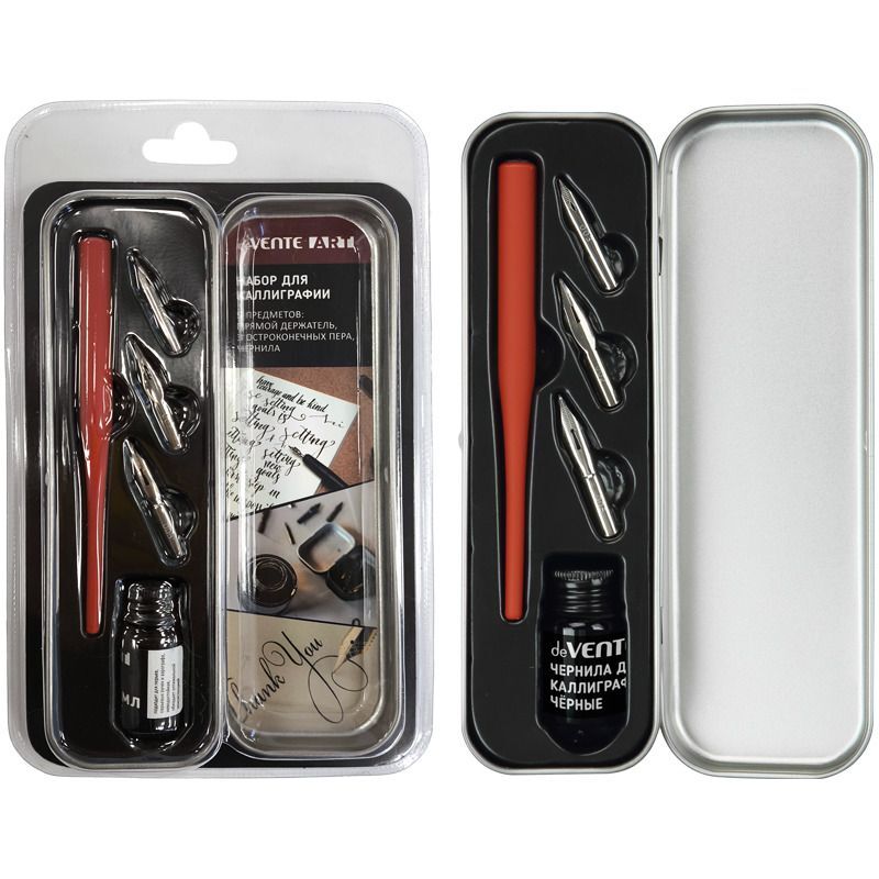 Набор для каллиграфии "deVENTE. ART" 5 шт (держатель, 3 разных по размеру пера, чернила в баночке 7 мл), в блистерной упаковке