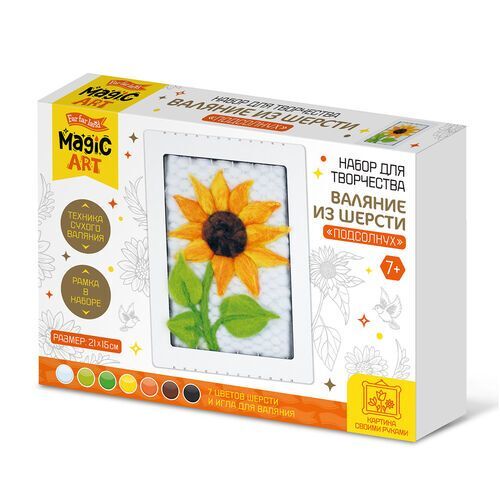 Набор для валяние шерстью "Подсолнух" с рамкой 7+