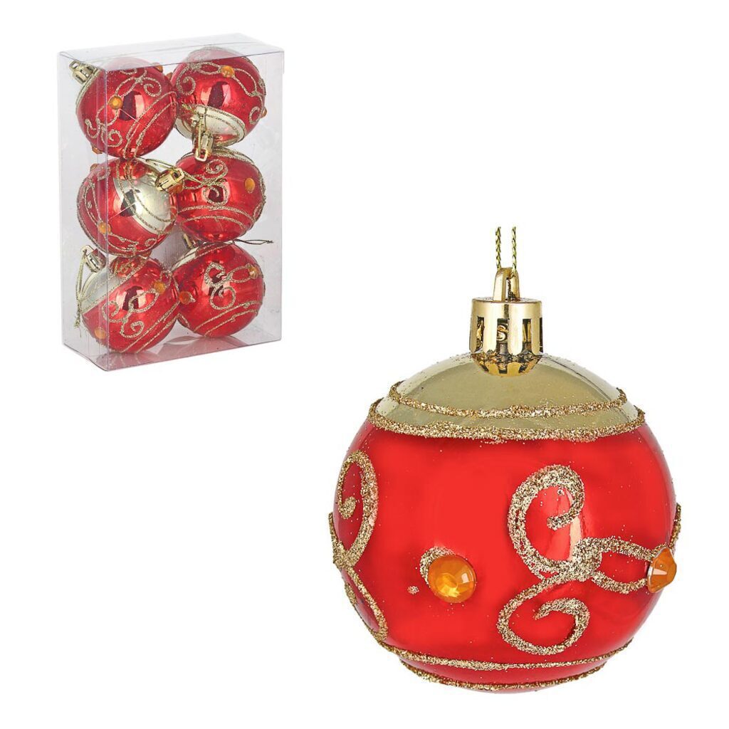 Набор елочных шаров 6 см, 6 шт., красный с золотом, стразы, пластик