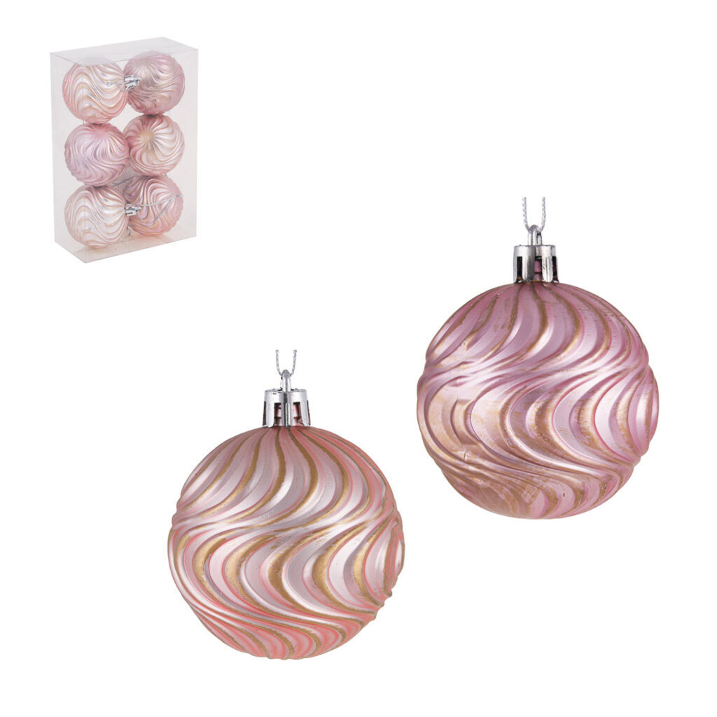 Набор елочных шаров 6 см, 6 шт., розовый, пластик