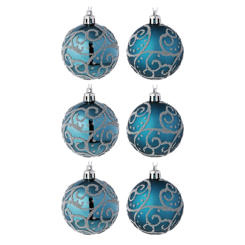 Набор елочных шаров 6 см, 6 шт., синий, пластик