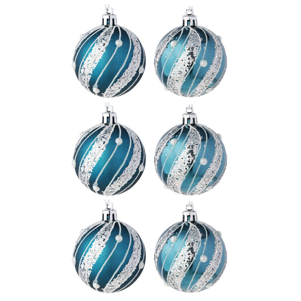 Набор елочных шаров 6 см, 6 шт., синий с серебром, пластик