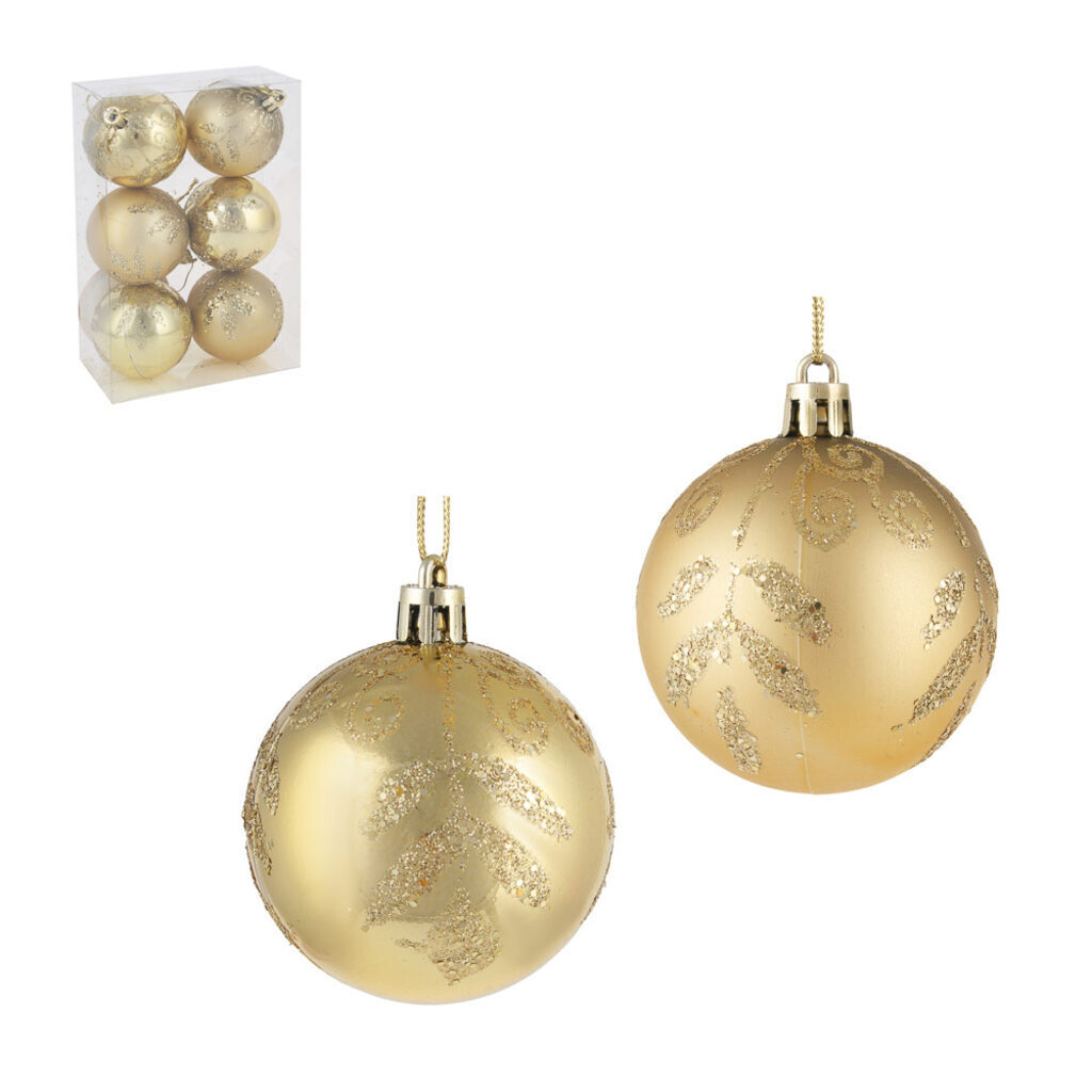 Набор елочных шаров 6 см, 6 шт., золото, пластик
