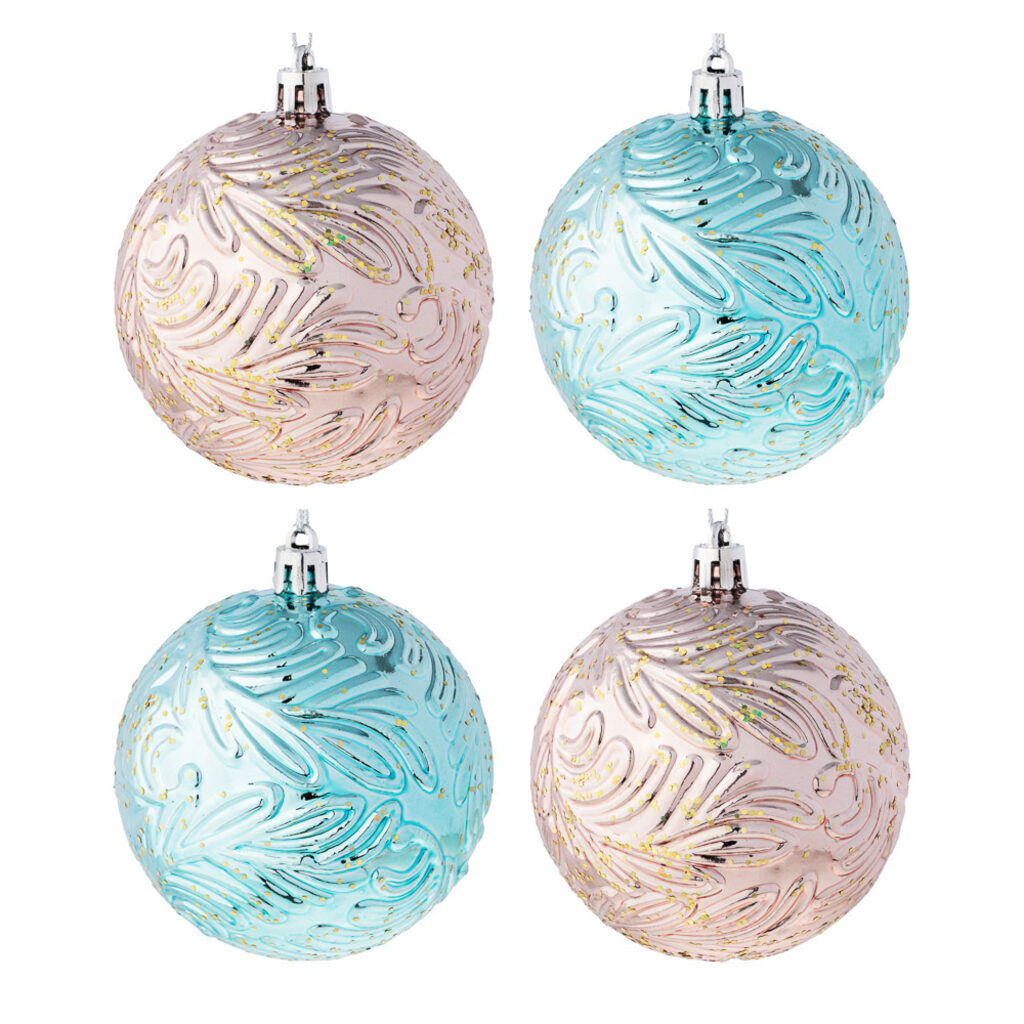 Набор елочных шаров 8 см, 4 шт., розовый, голубой, пластик